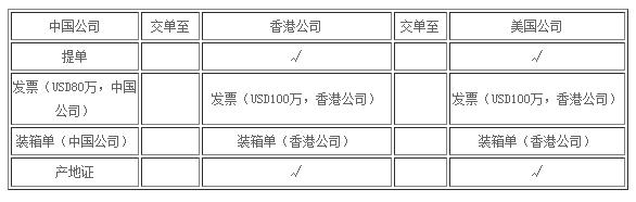 2、物流:很簡單,如果中國A公司有自營進出口權,則可由A公司直接出口報關(如果沒有,則您可以指定代理公司為其出口報關,當然也可以讓工廠自己去找代理),報關金額當然為80萬,并且是賣給香港公司,但貨物目的港為美國,也就是由中國大陸直接將貨物發到美國客戶那邊,絕對不需要經過香港轉港的。